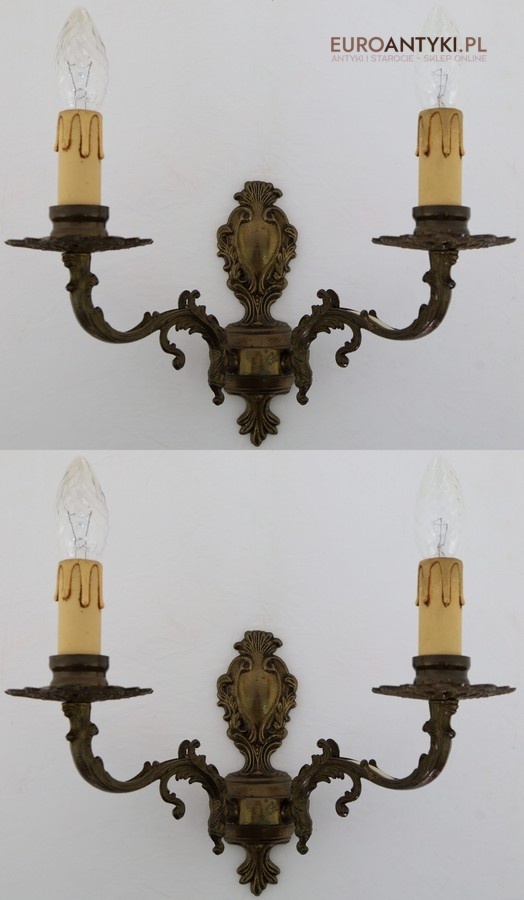 Barokowe kinkiety mosiężne z epoki – elegancka para oświetlenia ściennego