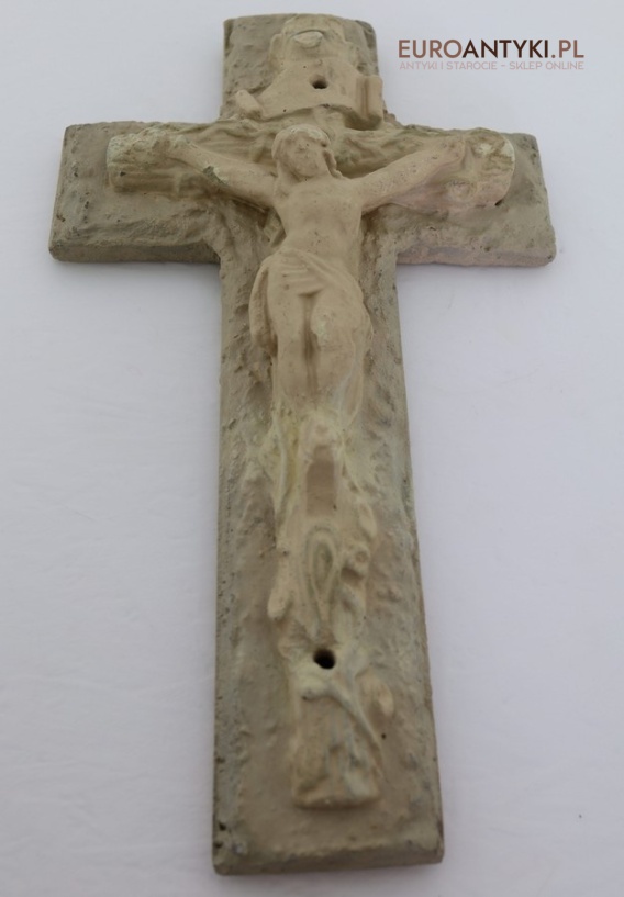Nietypowy krzyż betonowy z wizerunkiem Jezusa Chrystusa, idealny do montażu w starej kapliczce, przydrożnym miejscu modlitwy lub jako autentyczna dekoracja sakralna we wnętrzach stylizowanych na rustykalne, retro lub industrialne. Surowa forma nadaje mu wyjątkowego charakteru – prawdziwy duchowy akcent z historią, doskonale pasujący do aranżacji z duszą.