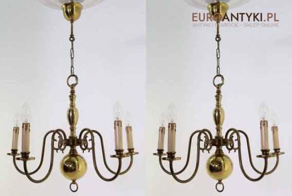 Ten stylowy, antyczny żyrandol pająk pochodzi z połowy XX wieku. Wykonany w całości z mosiądzu. To klasyczne europejskie rzemiosło — masywne, trwałe, ponadczasowe.