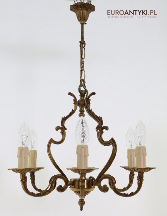 Zabytkowy żyrandol mosiężny w stylu klasycznym – elegancka lampa sufitowa vintage, średniej wielkości - idealna do dużego ganku, holu, łazienki, sypialni