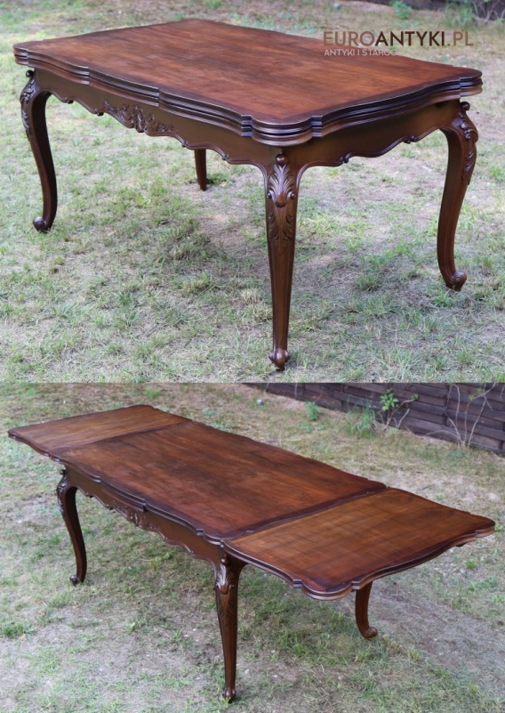 Duży antyczny stół w stylu Ludwika XV – lite drewno, rozkładany blat