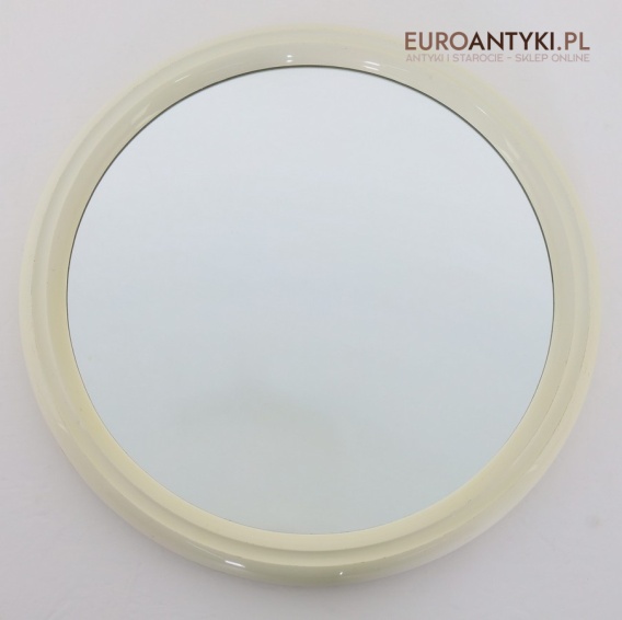 ✨ Przedmiotem oferty jest stylowe, retro lustro w lekkiej kremowej ramie wykonanej z tworzywa, pochodzące z lat 70–80. Ta minimalistyczna dekoracja świetnie sprawdzi się zarówno w klasycznych wnętrzach, jak i w stylowych aranżacjach w klimacie skandynawskim, boho czy retro. Posiada lekką głębokość, dzięki czemu doskonale podkreśli przestrzeń bez dominacji.