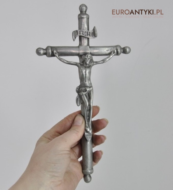 JEZUS CHRYSTUS NA KRZYZU INRI SREBRNY KOLOR ANTYK