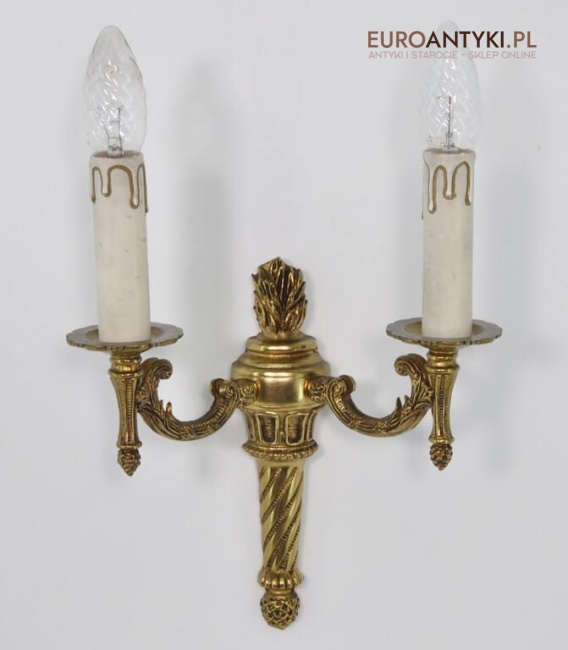 Kinkiet z mosiądzu. Stara lampka mosiężna. Styl Ludwik XVI