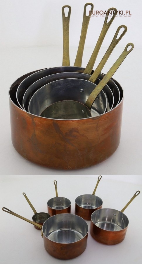 • Kolekcjonerski zestaw – pięć różnych rondli z epoki, nie współczesne kopie.