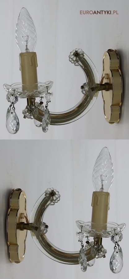 Kryształowe kinkiety tego typu to dziś rzadkość – coraz trudniej o modele kompletne i w świetnym stanie