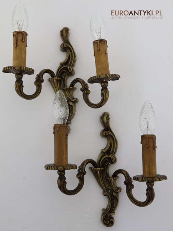 Komplet kinkietów mosiężnych retro – styl barokowy, piękne odlewy