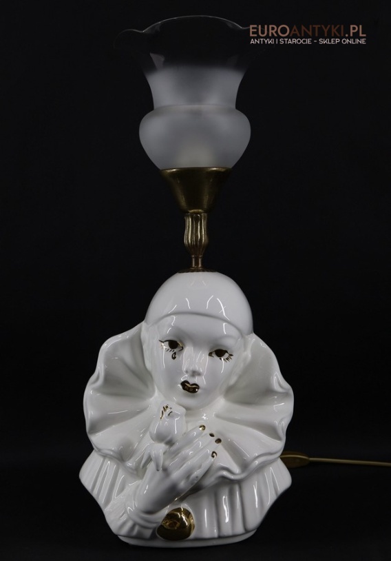 Lampa utrzymana jest w niezwykle dekoracyjnym stylu vintage z lat 50.–60. XX wieku. Ukazuje postać Pierrota – romantycznego błazna, znanego z włoskiej i francuskiej tradycji teatralnej. Styl ten łączy elementy nostalgii, emocji i artyzmu, doskonale wpisując się w aranżacje wnętrz w duchu retro, art déco i boho romantycznym. Tego typu dekoracje były modne w Europie Zachodniej i USA, dziś wracają do łask jako wyraz osobistego, nastrojowego designu.