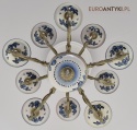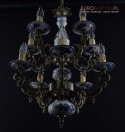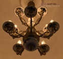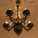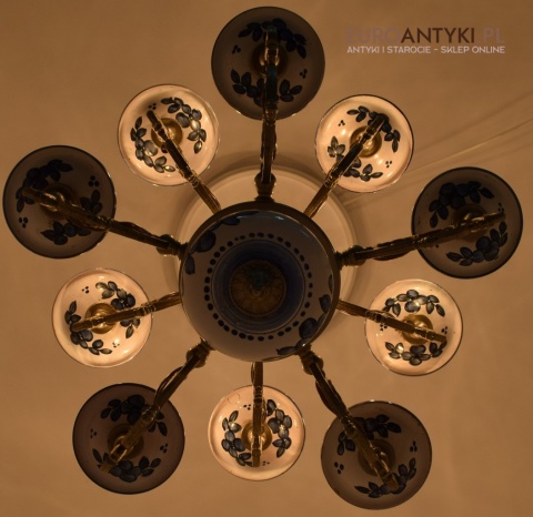 Całość bez uszkodzeń. Przedmiot kompletny, profesjonalnie wyczyszczony. Elektryka sprawna - sprawdzana przez naszego elektryka. Standardowe gniazda elektryczne typu E14. Obecnie można kupić żarówki LED o różnym natężeniu, różnej barwie światła i różnym wyglądzie. Nawet mała żarówka może być potężnej mocy i nie będzie pobierać wielu watt, przez co nie przegrzewa i nie uszkodzi kabli elektrycznych. Wszystkie lampy wysyłamy bez żarówek. Żarówki tego typu są łatwo dostępne w sklepach elektrycznych lub w internecie.