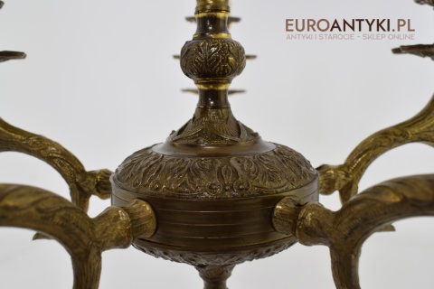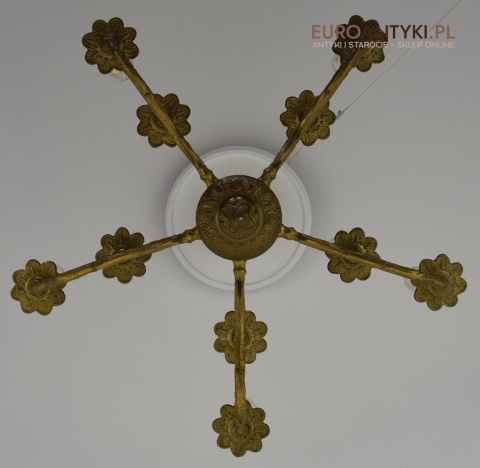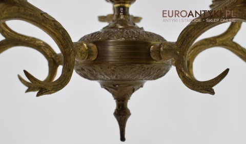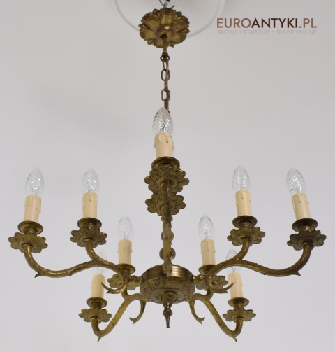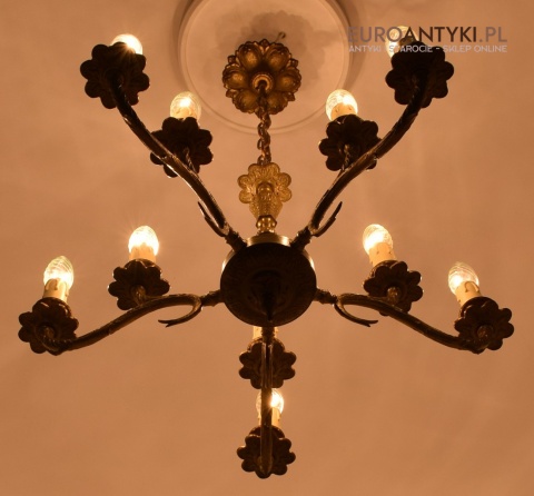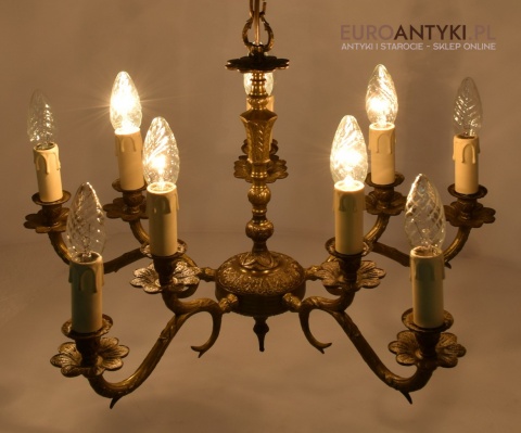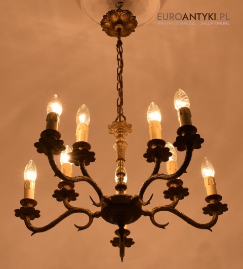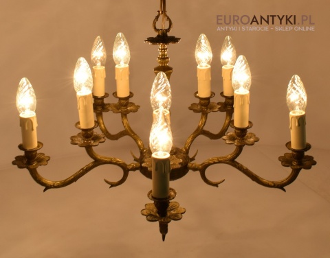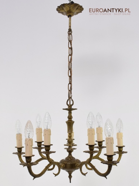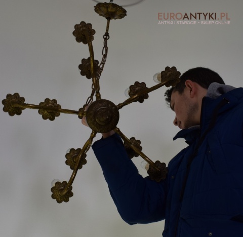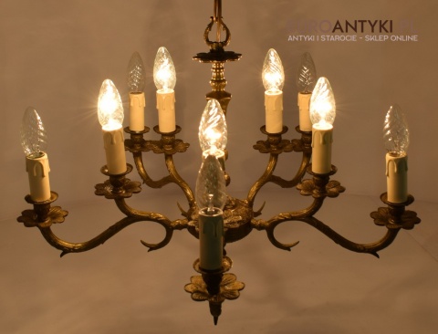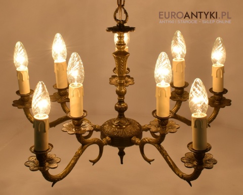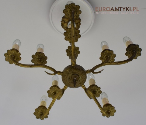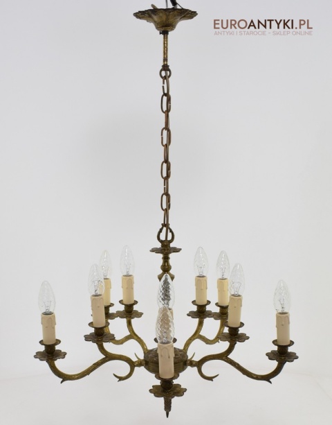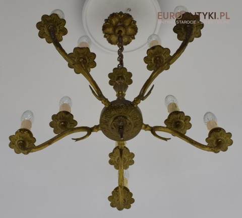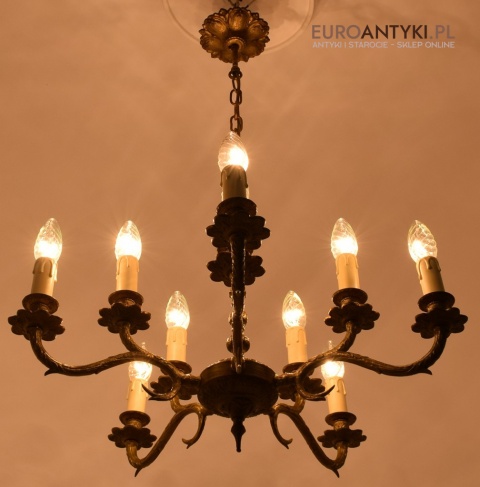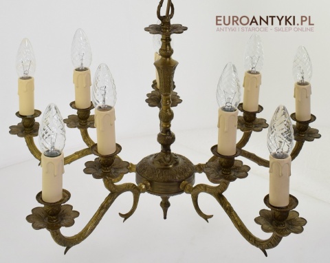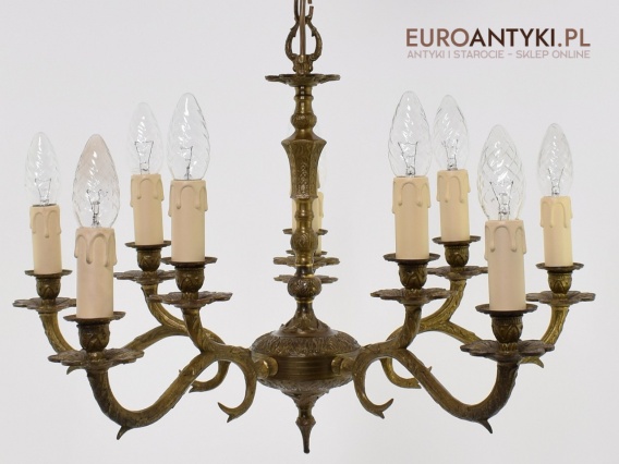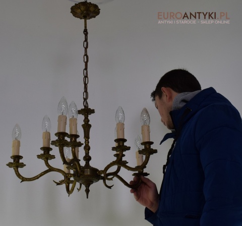 10 żarówkowy, antyczny żyrandol mosiężny do pałacyku, zamku.