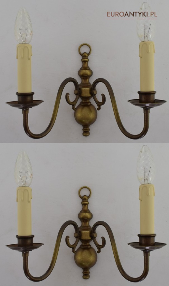Ta para antycznych lamp ściennych w klimacie vintage to idealny dodatek do Twojego wnętrza. Wykonane z mosiądzu, prezentują się bardzo elegancko i stylowo. Ich wygląd nawiązuje do dawnych czasów, co nadaje im unikalnego charakteru. Sprowadzone z Francji, pochodzą z połowy XX wieku. Gilzy wymienione na nowe w stylu vintage / retro.