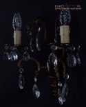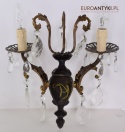 Antyczne lampy ścienne z kryształami to para wyjątkowych kinkietów w pałacowym stylu, które zostały sprowadzone z Włoch. Są prawdziwymi antykami pochodzącymi z pierwszej połowy XX wieku. Każdy detal tych lamp jest starannie wykonany i odzwierciedla piękno i elegancję epoki, w której powstały.