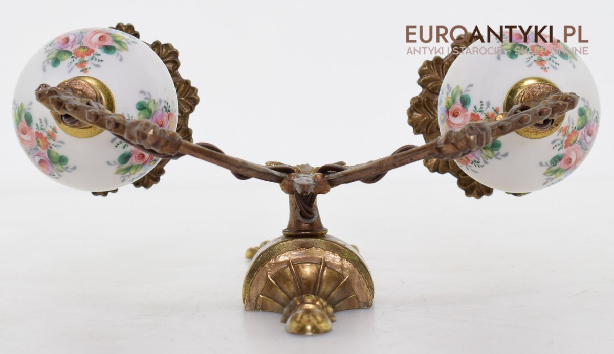 Wykonane z bardzo porządnych materiałów, a mianowicie z masywnego mosiądzu lub brązu + ceramiczne kule ozdobione motywami florystycznymi.