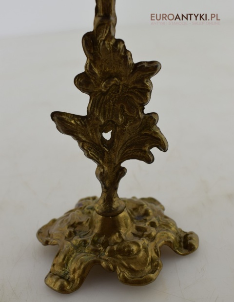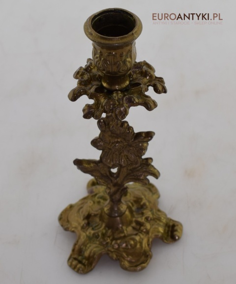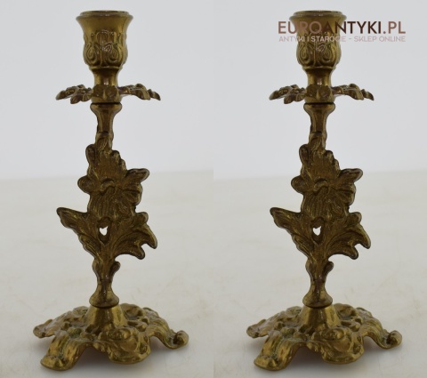 2 małe świeczniki mosiężne w rustykalnym stylu.