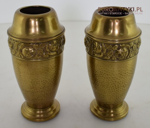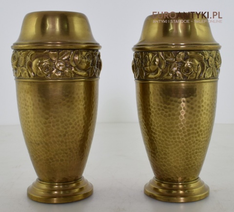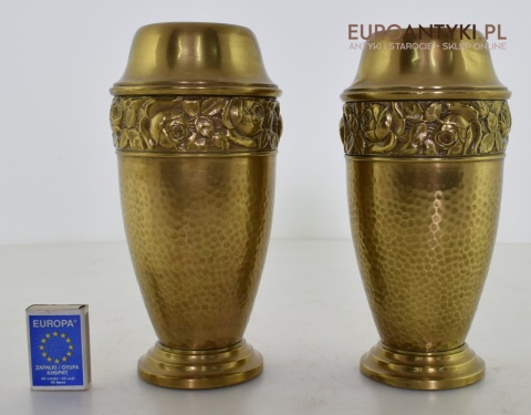 2 małe zabytkowe wazy mosiężne. Flakony z mosiądzu.