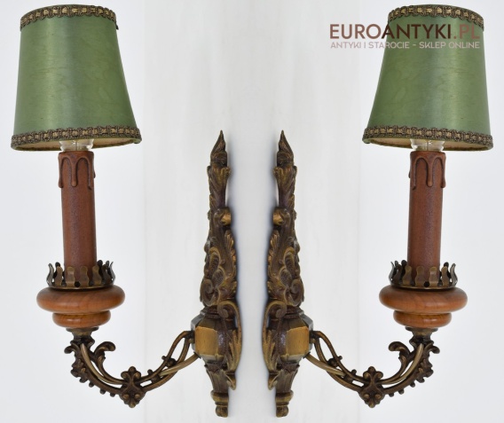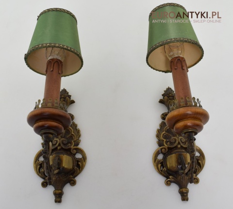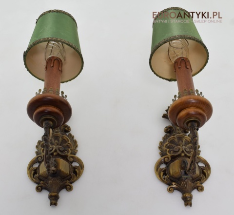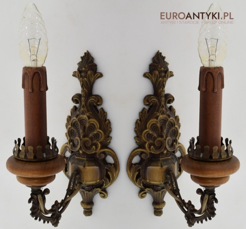 Para ślicznych mosiężnych kinkietów z dawnych lat.