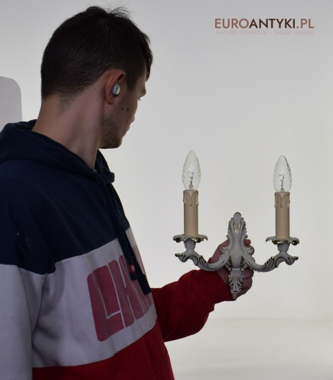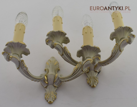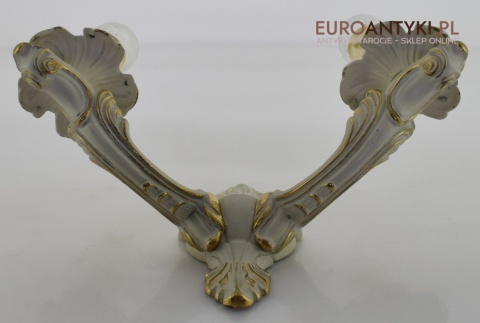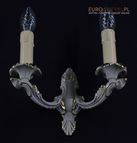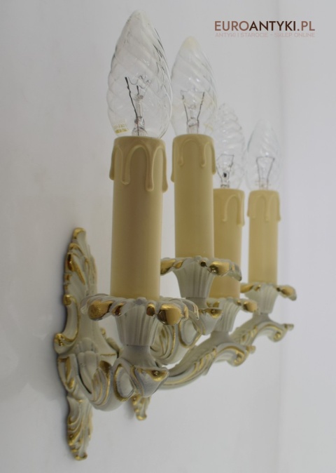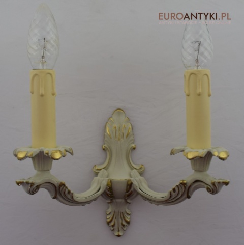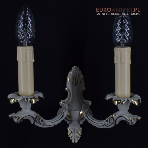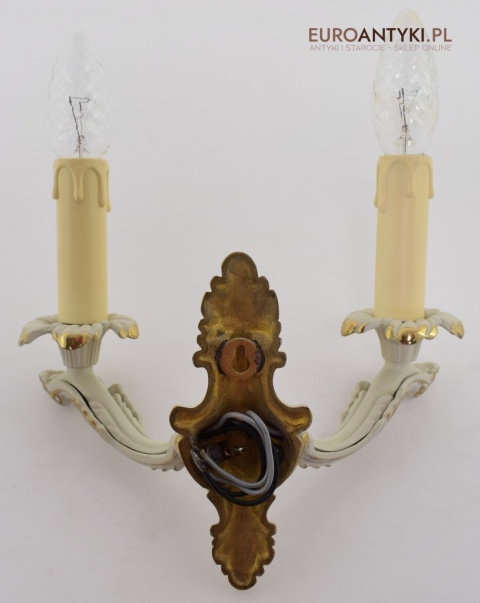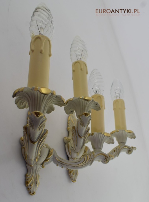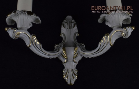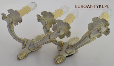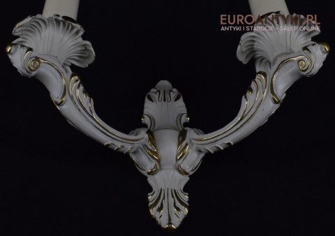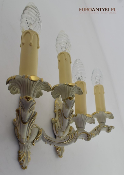 2 pałacowe mosiężne kinkiety kremowo złote w stylu barok rococo.