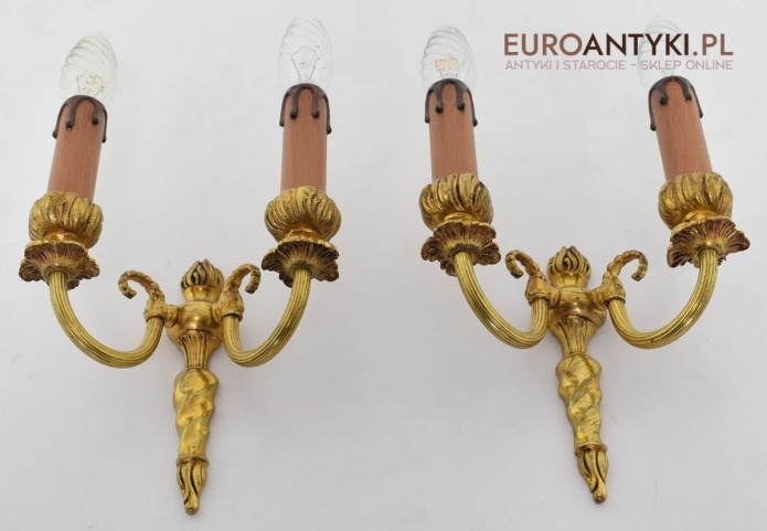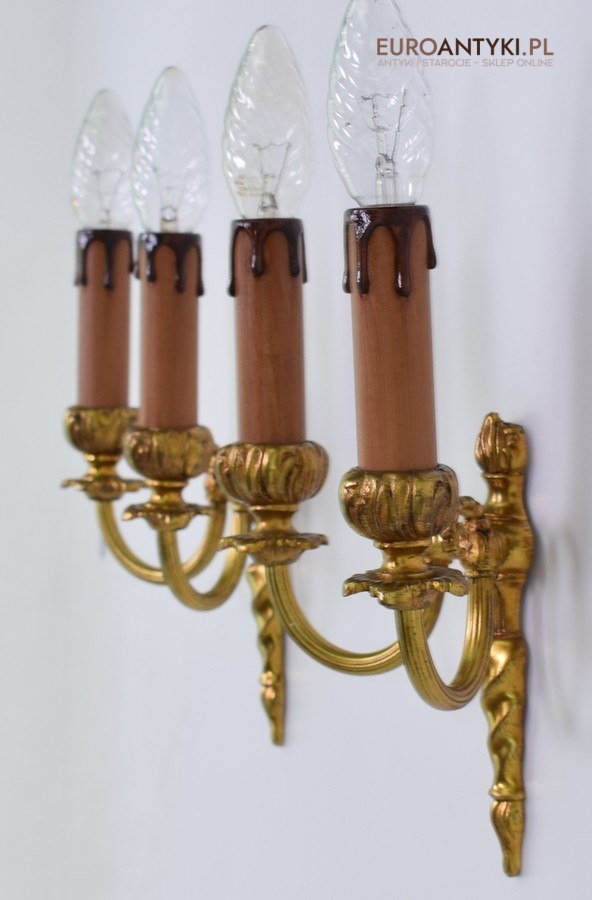 2 złote kinkiety zabytkowe lampki ścienne antyczne pałacowe zabytki
