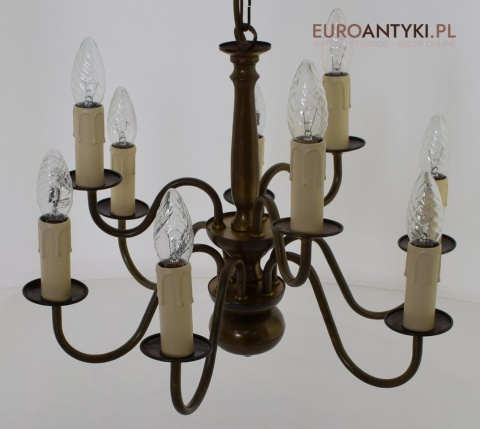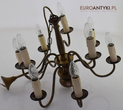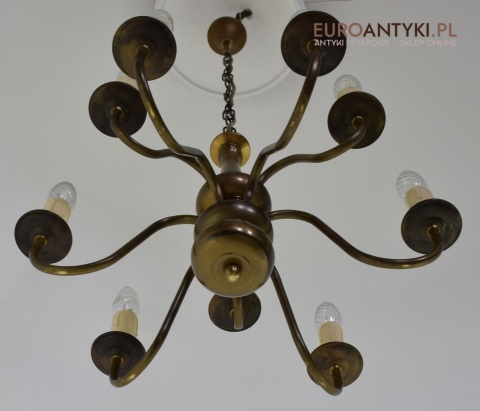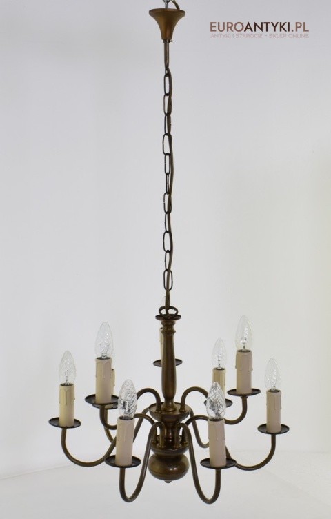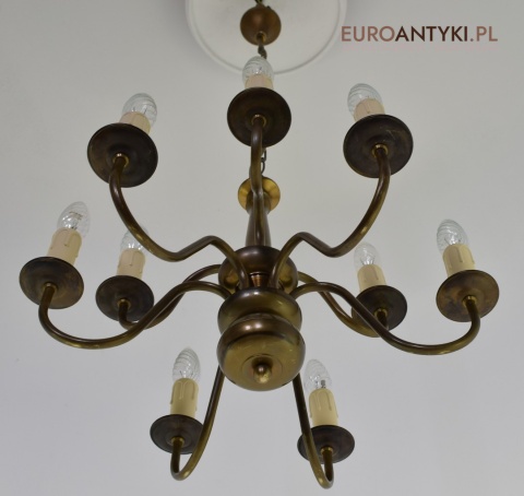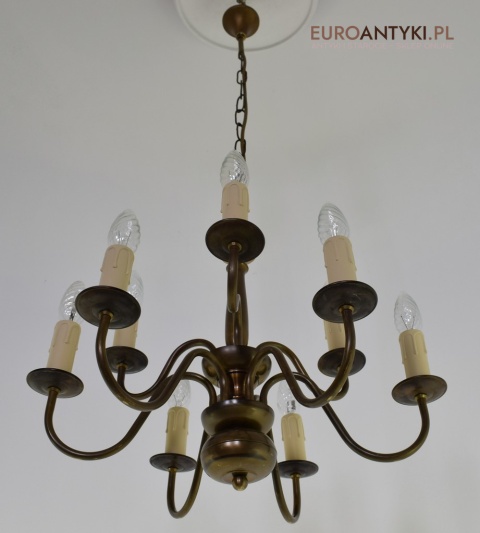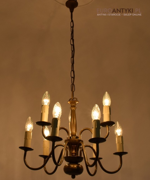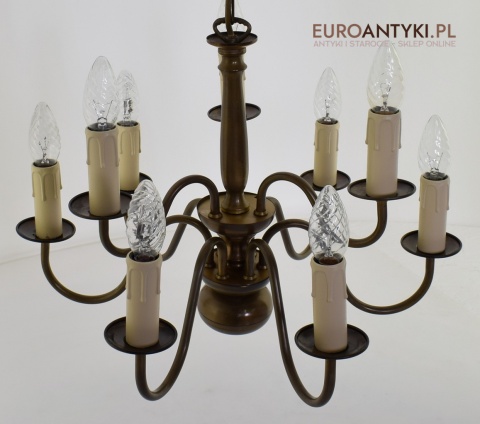 9 ramienny retro żyrandol mosiężny w klasycznym stylu.