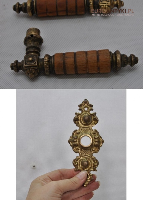 ANTYK STARE KLAMKI KLAMKA SZYLDY MOSIADZ drewno