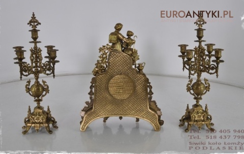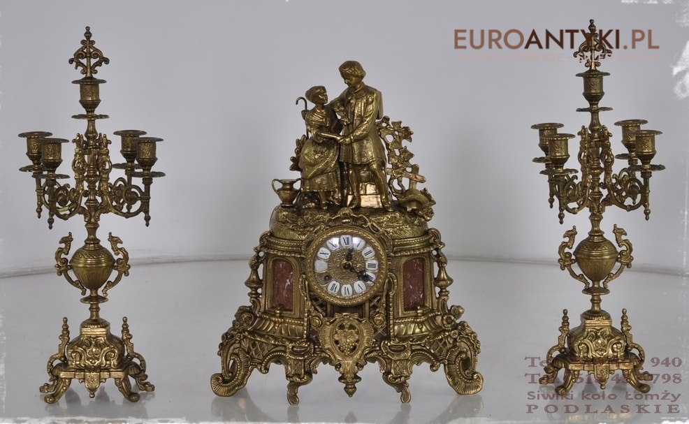 ANTYK STARY MOSIEZNY ZEGAR 2 SWIECZNIKI MOSIADZ XL