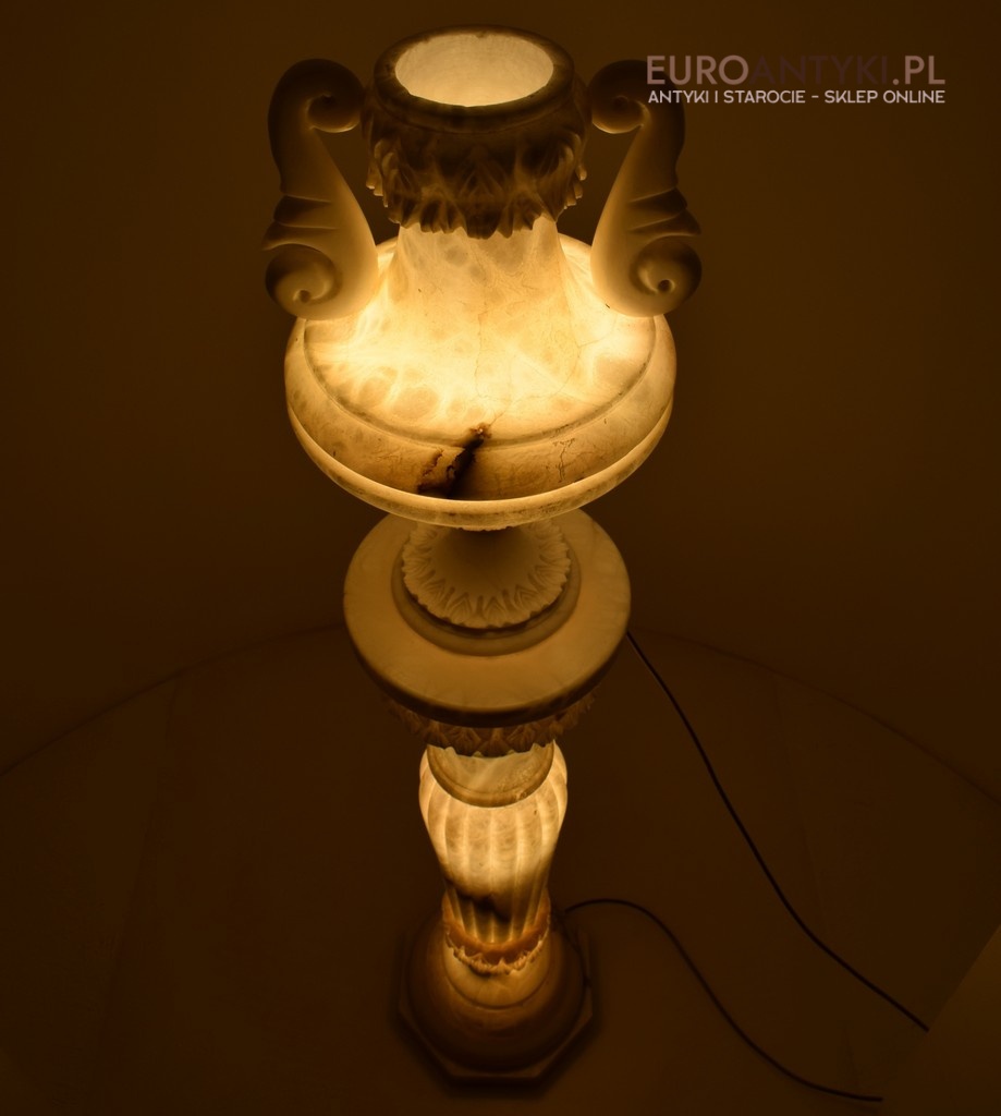 Monumentalna, podświetlana lampa dekoracyjna – 37 kg czystego alabastru! Stan IDEALNY!