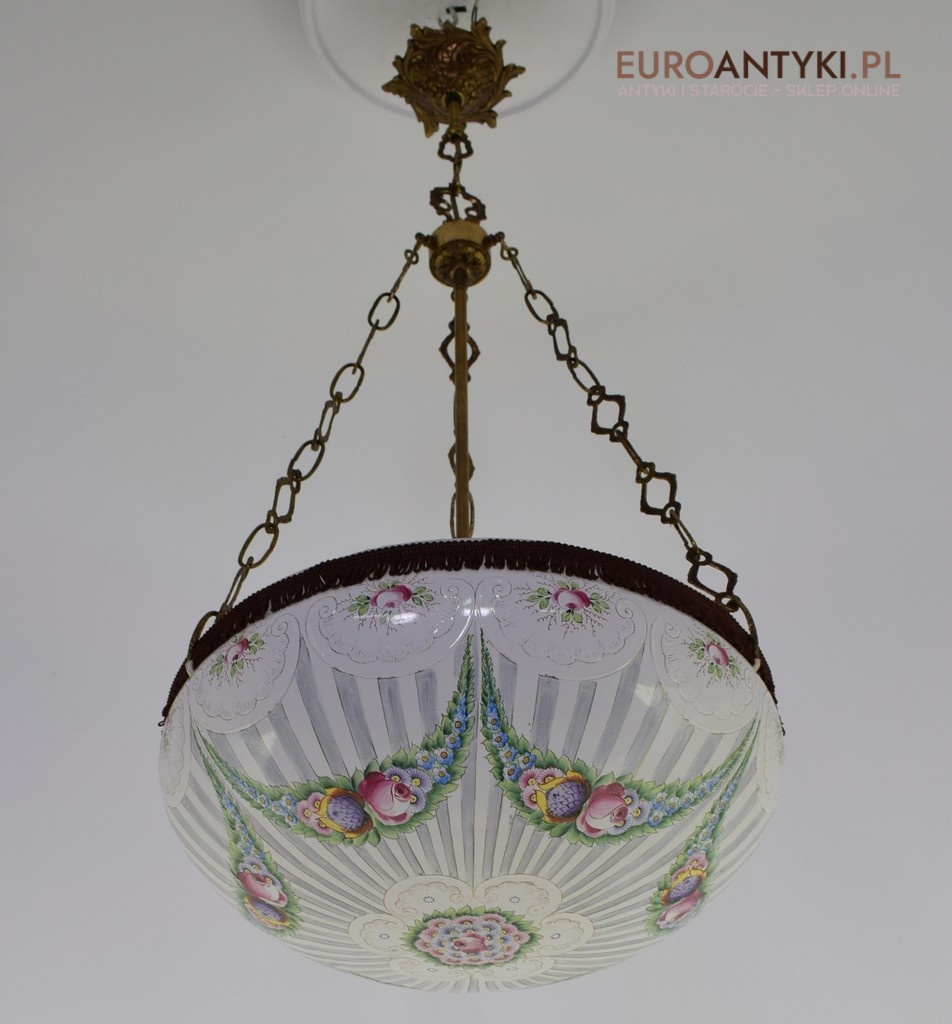 Antyczna ampla. Zabytkowy żyrandol secesyjny, Art Nouveau, Jugendstil.