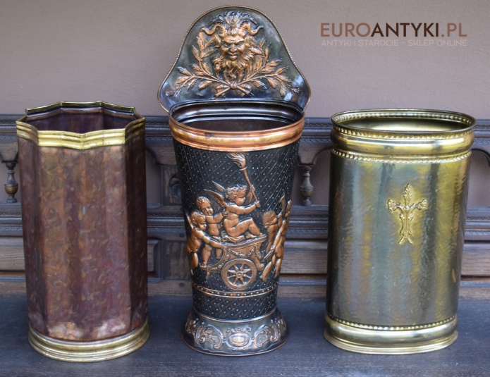 Antyczna dekoracyjna śmietniczka mosiężna. Śmietnik parasolnik pojemnik na laski.