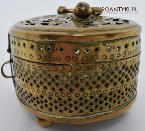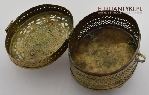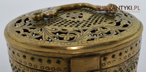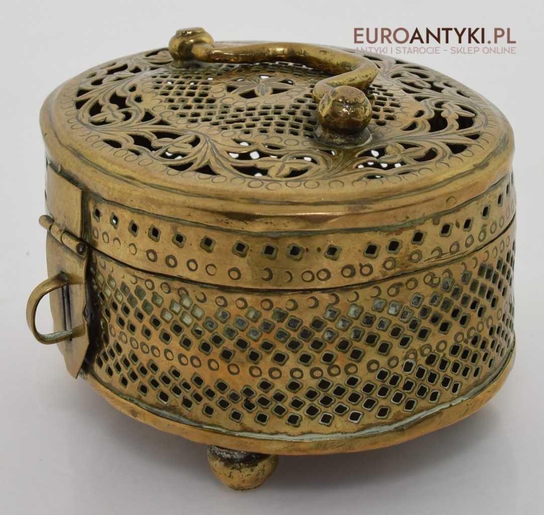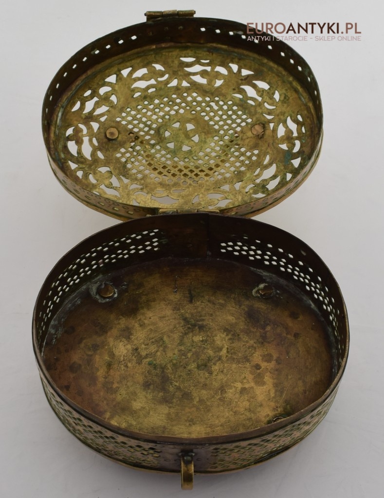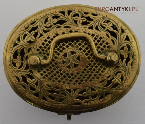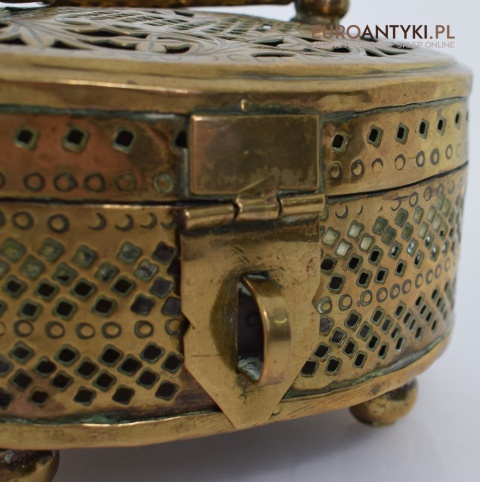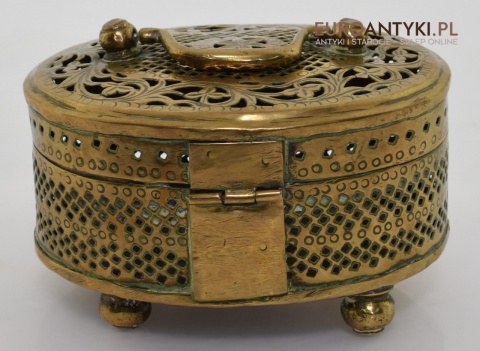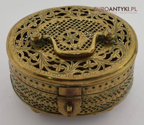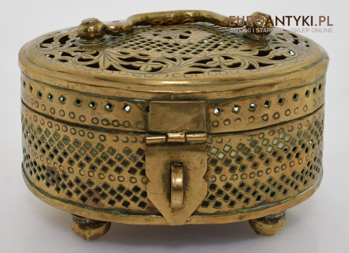 Antyczna mosiężna szkatułka z lat 1900 w secesyjnym stylu.