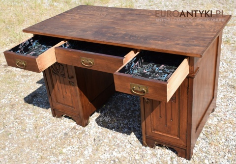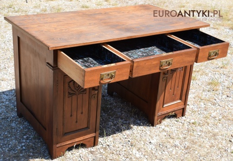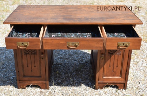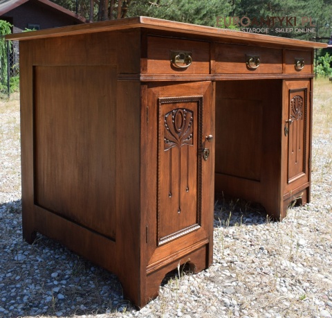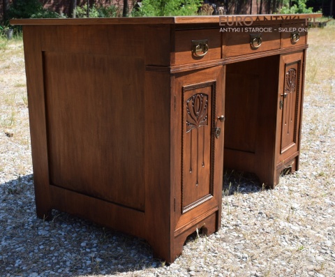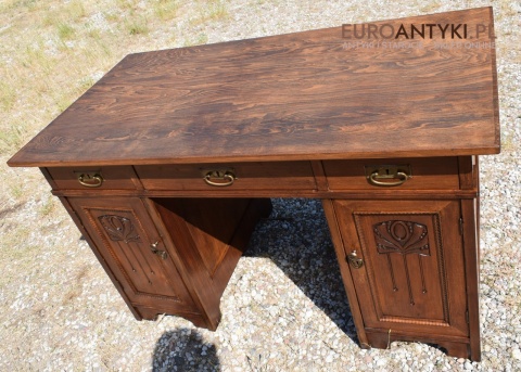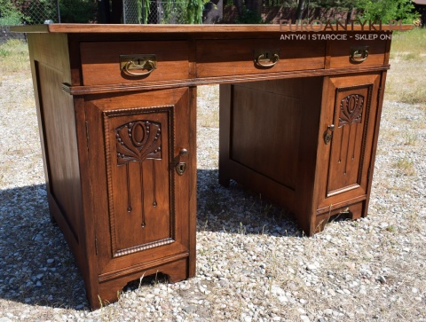 Antyczne Dębowe Biurko Secesyjne - Odrestaurowane
