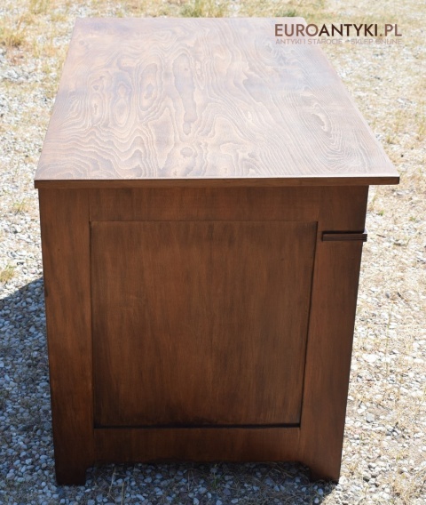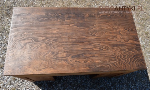 Materiał: Blat wykonany jest z drewna fornirowanego, czyli cienkiej warstwy drogiego drewna naklejonej na tańsze drewno bazowe w tym przypadku drewno dębowe. Takie rozwiązanie pozwalało na osiągnięcie efektu luksusu i piękna przy jednoczesnym obniżeniu kosztów produkcji.