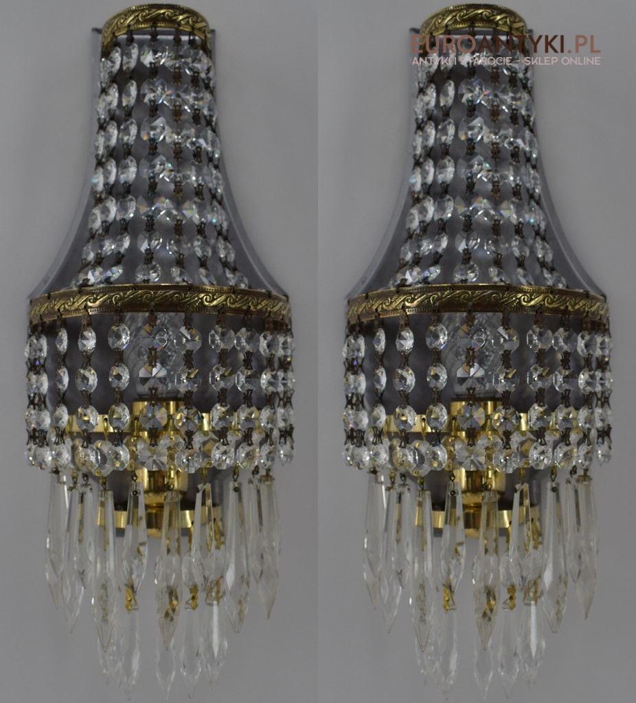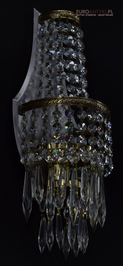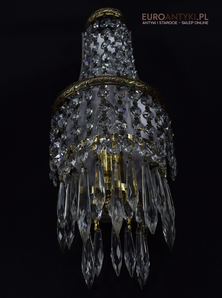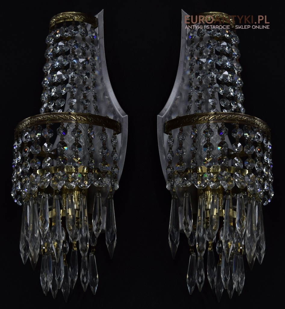 Antyczne kinkiety kryształowe. Lampy ścienne retro vintage.