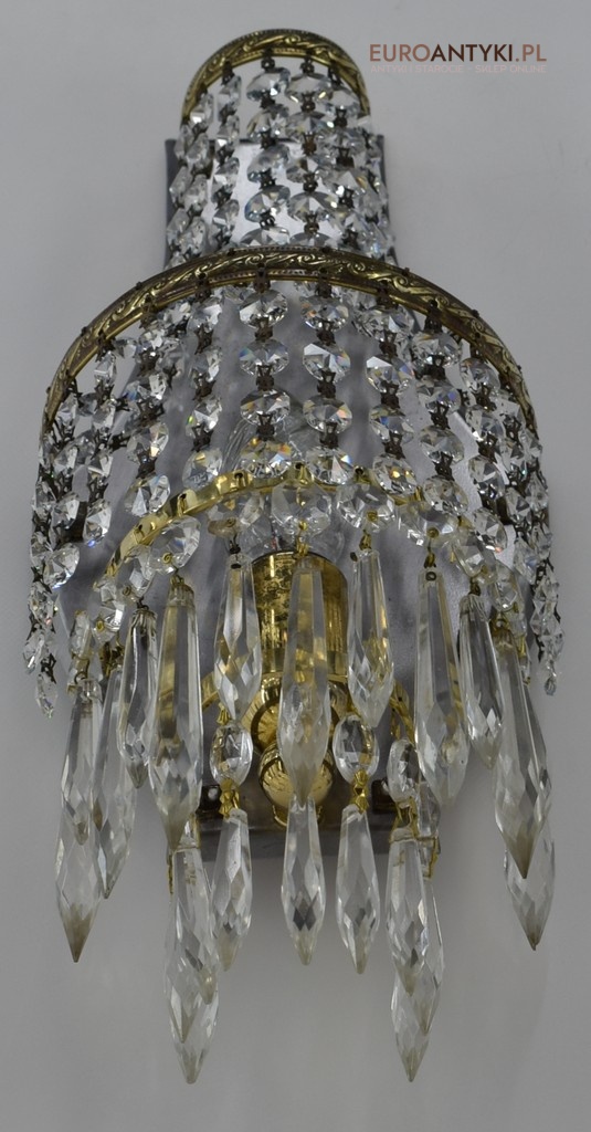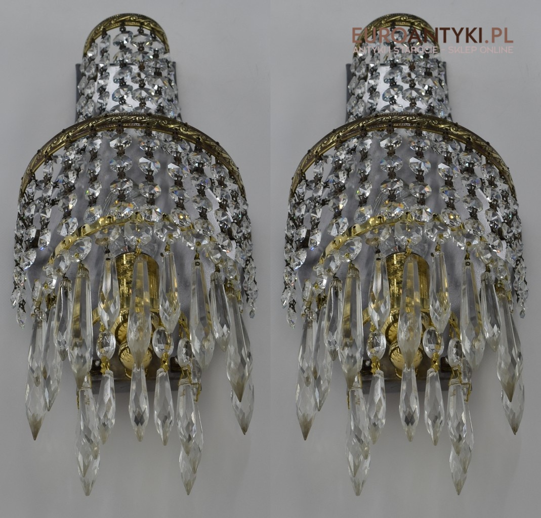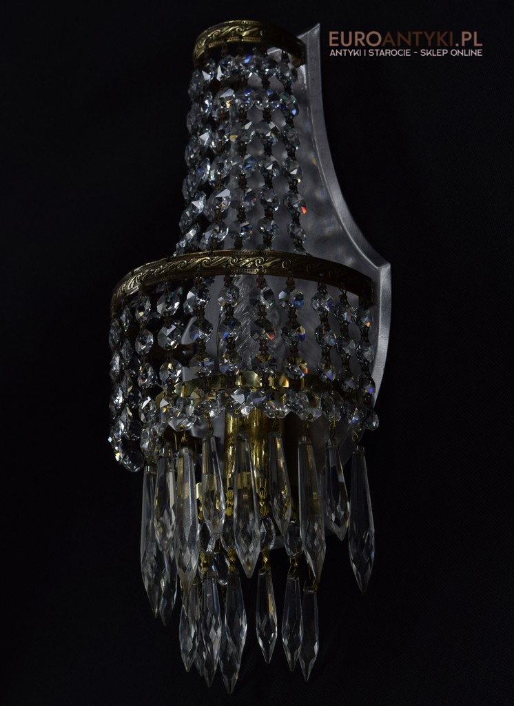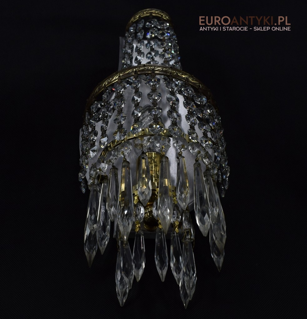 Antyczne kinkiety kryształowe. Lampy ścienne retro vintage.