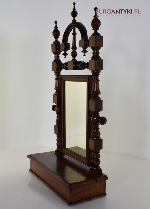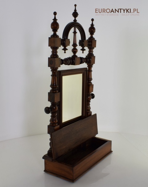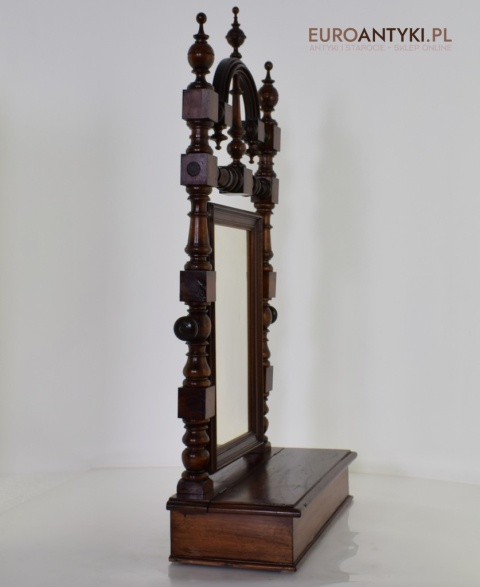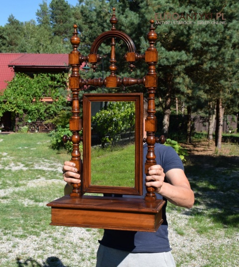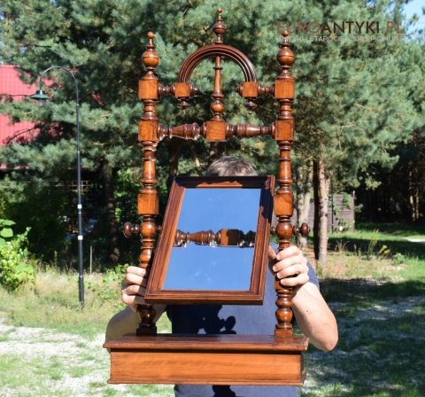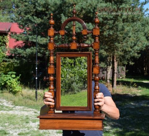 Antyczne lustro drewniane w eklektycznym stylu. Rustykalne meble.