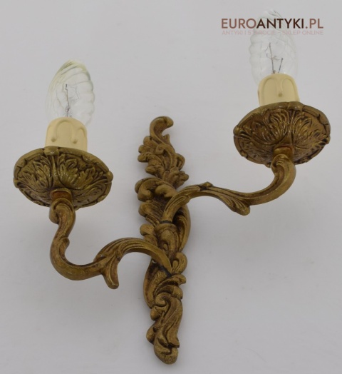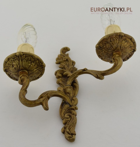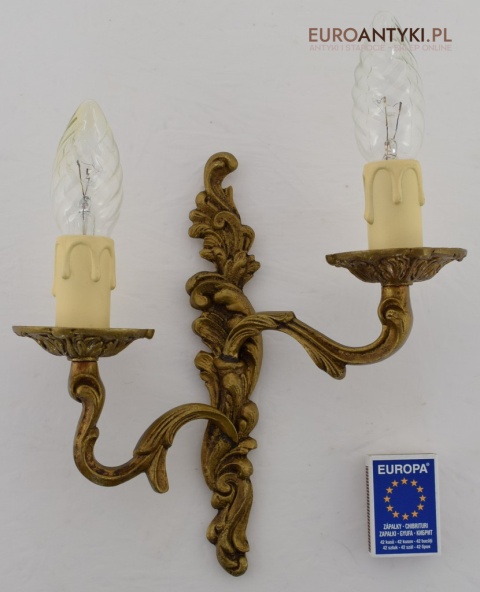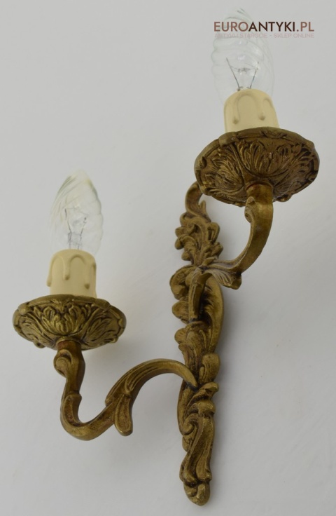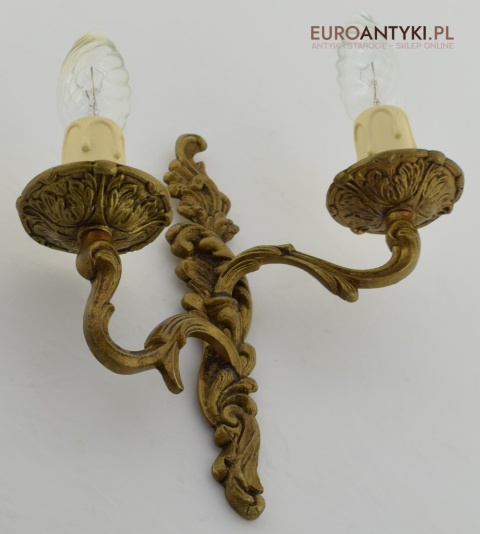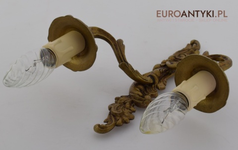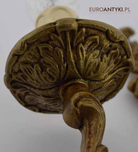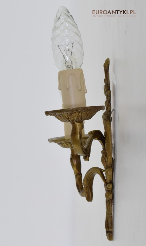 Sprowadzony prosto z Francji, kinkiet datowany jest na połowę XX wieku i dumnie reprezentuje styl, który był synonimem przepychu i wyrafinowania. Bogato zdobione detale oraz dynamiczne krzywizny tego mosiężnego dzieła sztuki to doskonały wybór dla tych, którzy cenią sobie historię połączoną z elegancją.