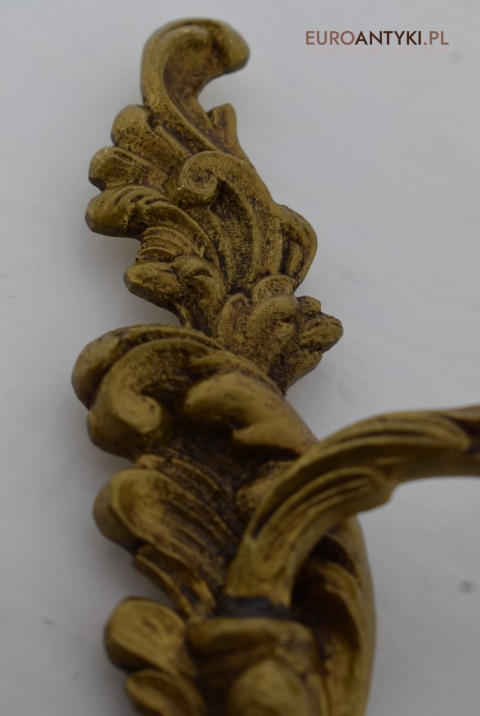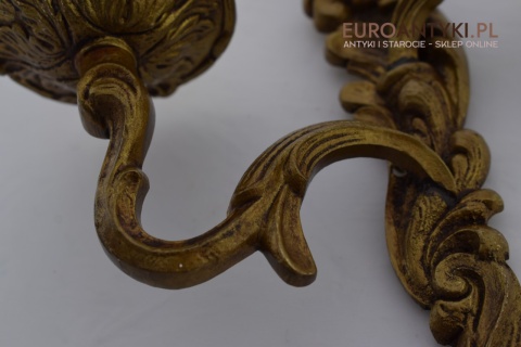 Przed Państwem pojawia się okazja nabycia antycznego kinkietu odlanego z masywnego mosiądzu, który przyciąga wzrok swoją barokowo-rokokową formą. Ten prawdziwie piękny antyk jest więcej niż dekoracją – jest funkcjonalnym przedmiotem, który rozświetli Państwa przestrzeń, nadając jej wyjątkowego charakteru.