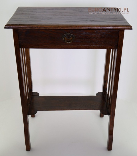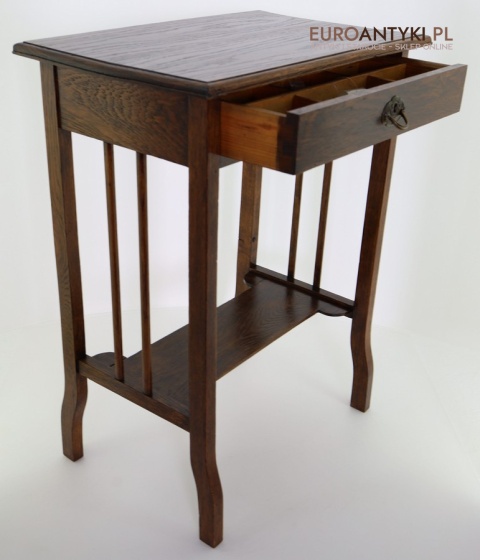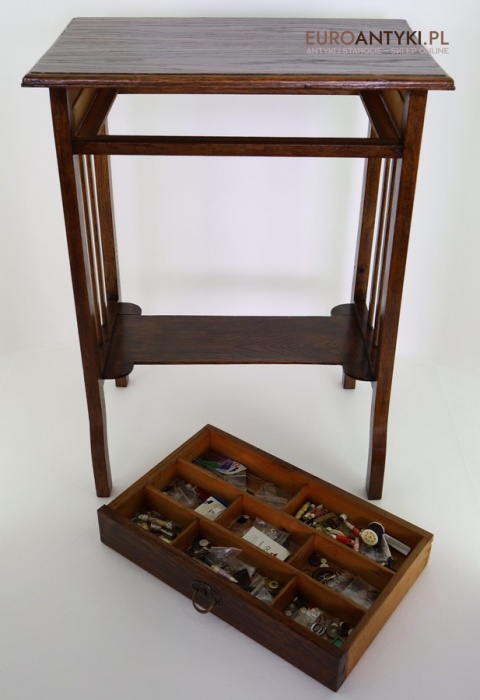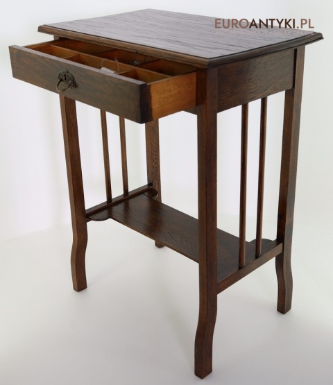 Przedstawiamy oryginalny antyczny stolik pomocnik pochodzący z 1900 roku, sprowadzony prosto z Francji. Kiedyś służył jako niciak. Ten niezwykle stylowy mebel utrzymany jest w secesyjnym stylu, który wyróżnia się eleganckimi, płynnymi liniami i funkcjonalnym designem. Bardzo dobrze się zachowł, "nie rozklekotany", bez śladów po kornikach i bez innych brzydkich niepodzianek. Bez uszkodzeń. Kompletny. Profesjonalnie wyczyszczony - 100% OK!