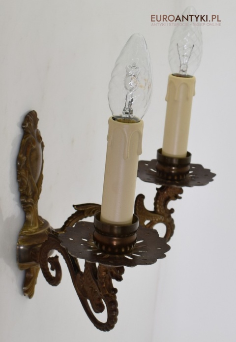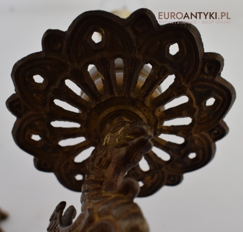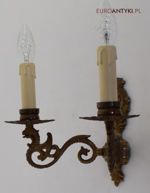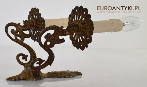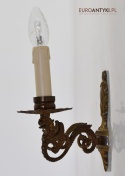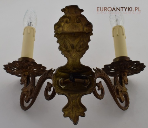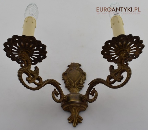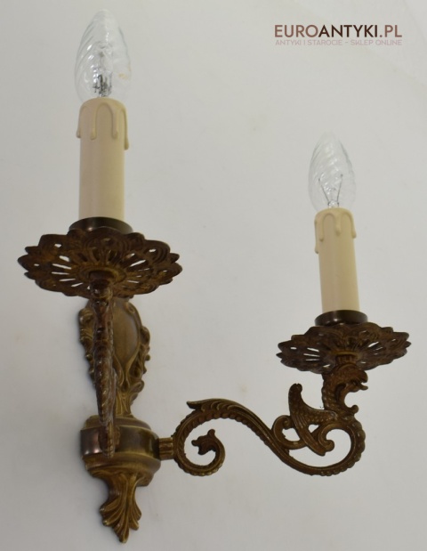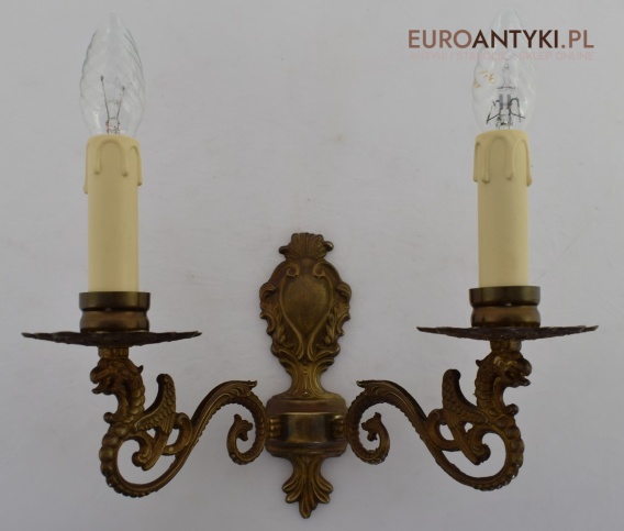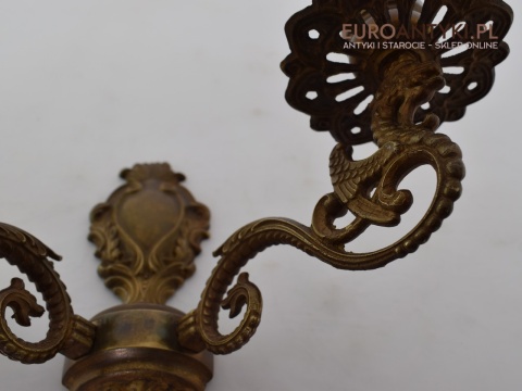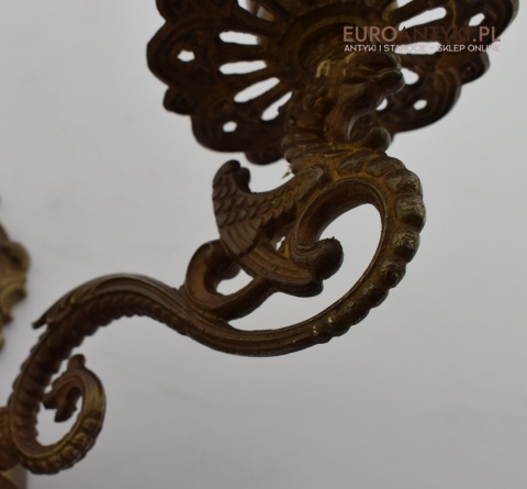 Antyczny kinkiet mosiężny z gryfami. Lampy zabytkowe.