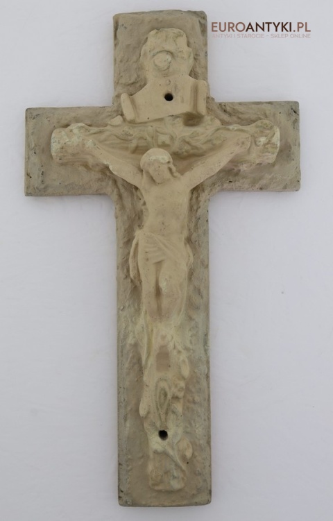 Nietypowy krzyż betonowy z wizerunkiem Jezusa Chrystusa, idealny do montażu w starej kapliczce, przydrożnym miejscu modlitwy lub jako autentyczna dekoracja sakralna we wnętrzach stylizowanych na rustykalne, retro lub industrialne. Surowa forma nadaje mu wyjątkowego charakteru – prawdziwy duchowy akcent z historią, doskonale pasujący do aranżacji z duszą.