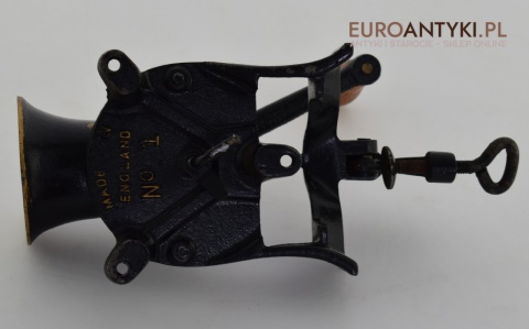 Prezentujemy antyczny młynek do kawy wyprodukowany przez renomowaną firmę SPONG & CO LTD, która od XIX wieku słynie z produkcji wysokiej jakości sprzętu kuchennego. Ten konkretny model, oznaczony jako NO. 1, został wyprodukowany w Anglii i stanowi doskonały przykład solidnego rzemiosła oraz funkcjonalnego designu. Młynek jest sprawny - można mielić ziarna kawy.