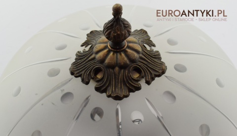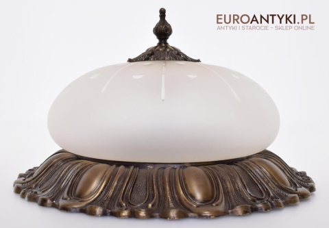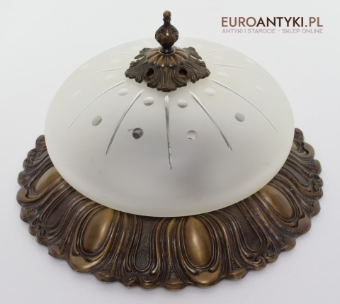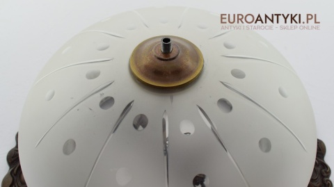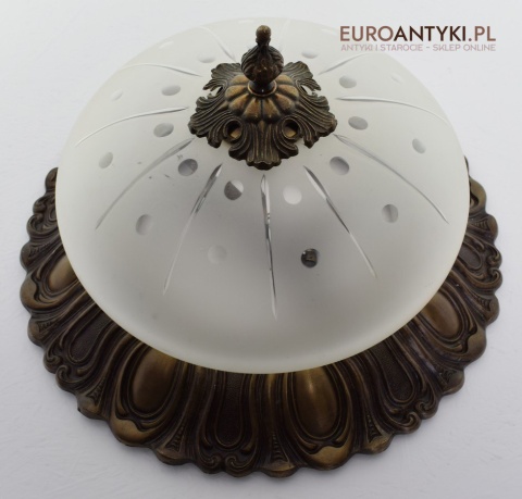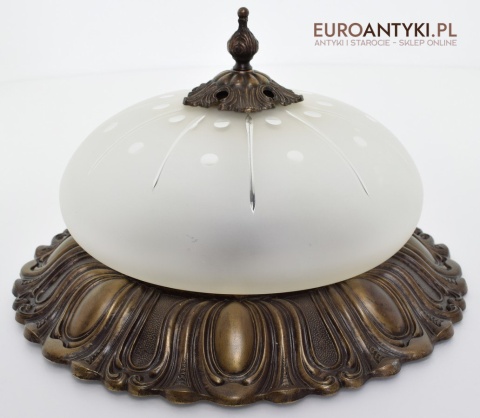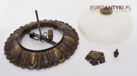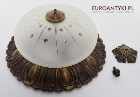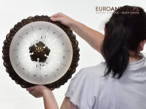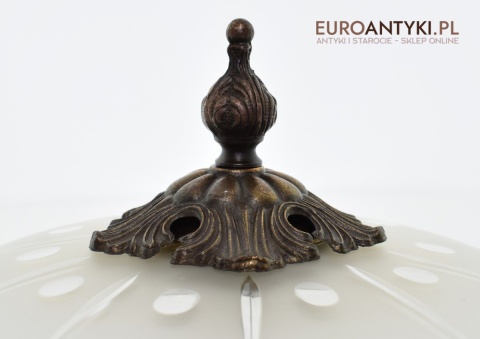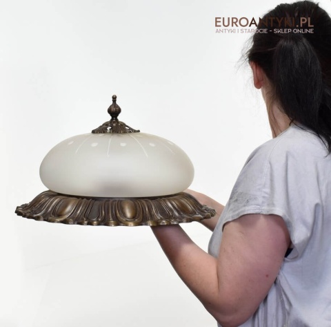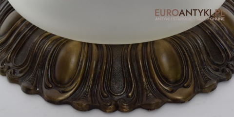 Cudowna pałacowa lampa sufitowa będzie perłą w całym pomieszczeniu. Jeżeli kochasz prawdziwe antyki to ten plafon musi być twój! Antyki dają prawdziwy klimat , nie do zastąpienia przez współczesne lampy. Proszę zwrócić uwagę na precyzje odlewów i jakość wykonania klosza. Ten wyjątkowej wielkości plafon nadaje się do różnych aranżacji wnętrz - tylko wyobraźnia jest barierą!