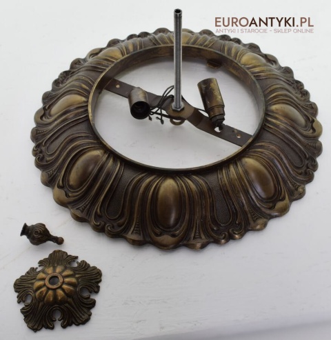 Zabytkową lampę sufitową sprowadziliśmy z Francji. Pochodzenie datujemy na lata 1920-30. Elektrykę wymieniliśmy na nowszą ale nie na całkowicie nowa bo zepsuła by klimat starodawnej lampy. Elektryka jest sprawna - sprawdzana. 2 Standardowe gniazda typu E14 - każde max 60 watt. Na życzenie możemy wstawić gniazda do żarówek o większej mocy E27 - wtedy będzie możliwość użycia żarówek o max mocy 100 watt każda. Wszystkie zabytkowe plafony i dworskie lampy wysyłamy bez żarówek.