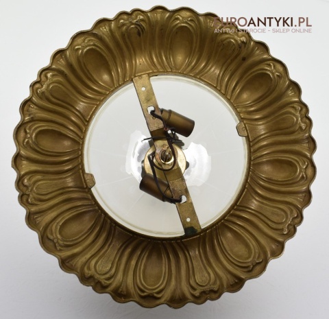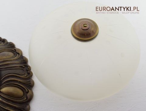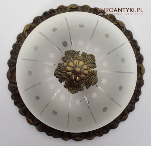 Śliczny stary plafon pochodzący z epoki secesyjnej jest wykonany z masywnego brązu i szklanego szlifowanego klosza.