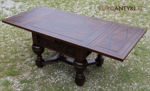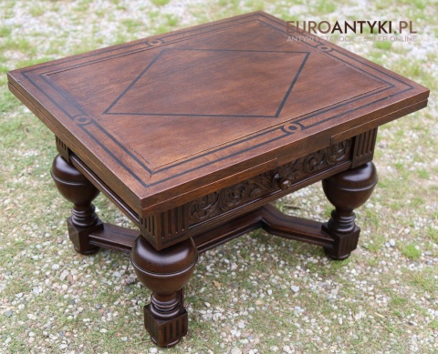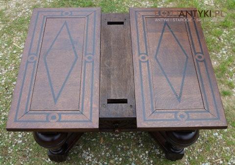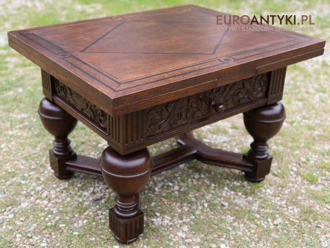 Zabytkowy rozkładany stolik vintage z okresu neorenesansu – idealny do salonu, biura lub gabinetu