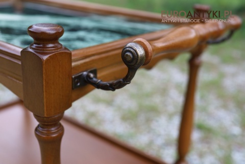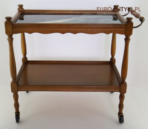 Przedstawiamy niezwykle stylowy barek z połowy XX wieku, sprowadzony z Francji 🇫🇷 – oryginalny mebel na czterech obrotowych kółkach, wykonany z litego drewna i zwieńczony blatem z naturalnego zielonego marmuru Verdi Alpi. Kamień ten charakteryzuje się unikalnym rysunkiem żył i intensywną zielenią z jasnymi żyłkami, co nadaje całości elegancji i klasy premium 🌿🪨. Marmurowy blat bez uszkodzeń!