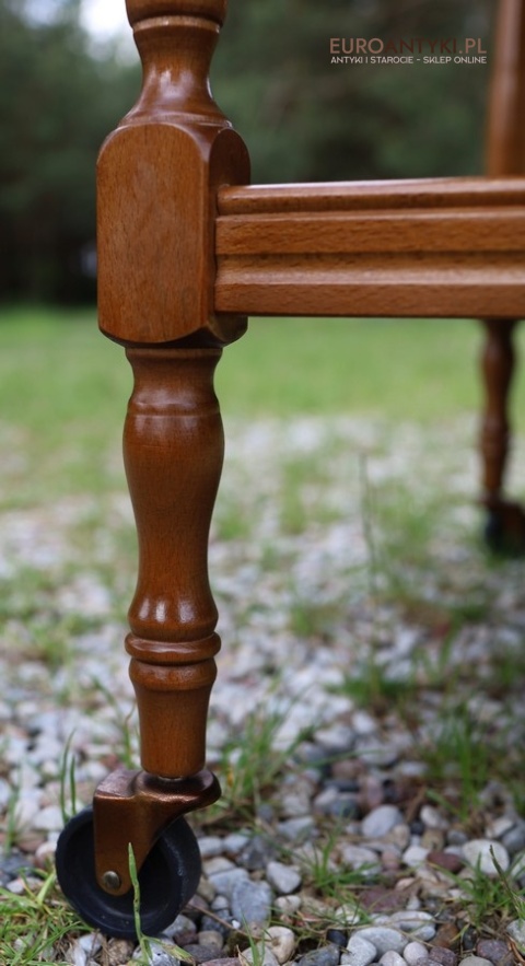 Ten wyjątkowy vintage barek / stoliczek ruchomy zachwyca klasycznymi proporcjami i detalami w stylu mid-century modern, który obecnie przeżywa prawdziwy renesans. Toczone nogi, wygodny drewniany uchwyt i wyprofilowane listwy nadają mu subtelnej elegancji i szlachetności. Tego typu retro meble doskonale odnajdują się we współczesnych wnętrzach – zarówno loftowych, jak i rustykalnych.