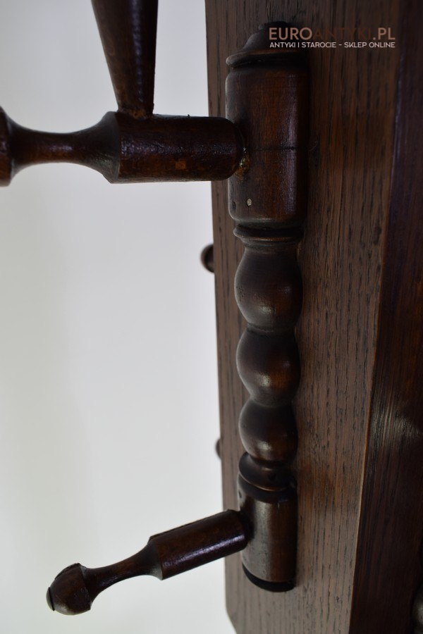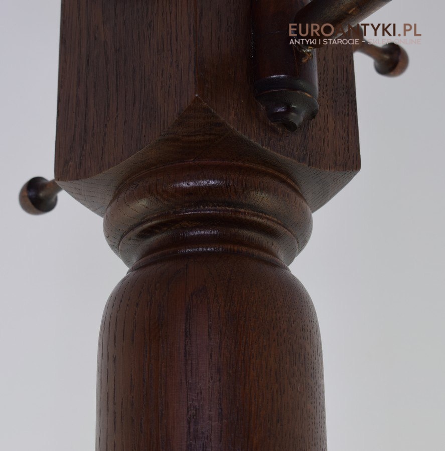 Antyczny wieszak stojący dębowy antyk z kancelarii adwokackiej z Genewy