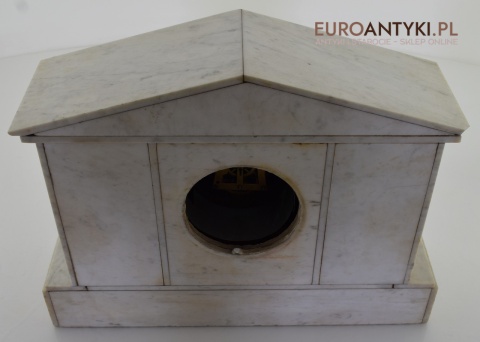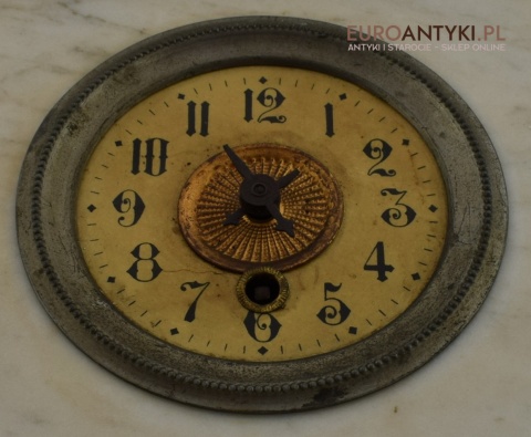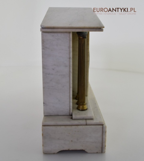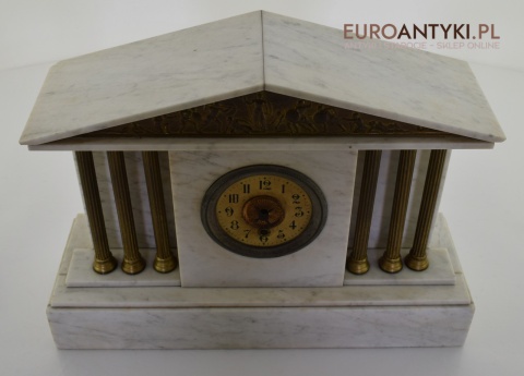 Antyczny zegar z białego marmuru z przystawkami. Przełom 19/20 wieku.