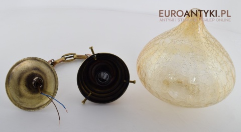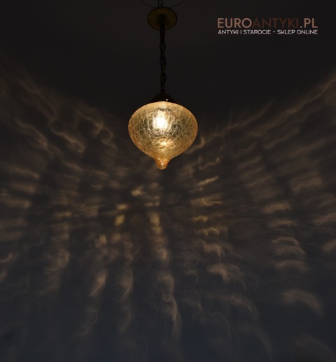 Sprowadzony z Francji. Wykonany z mosiądzu + szklany strukturalny klosz rzucający klimatyczne wzory na ściany - co widać na wielu zdjęciach. Klosz w idealnym stanie.