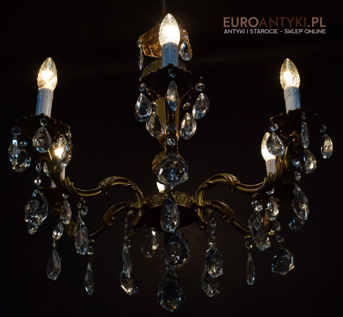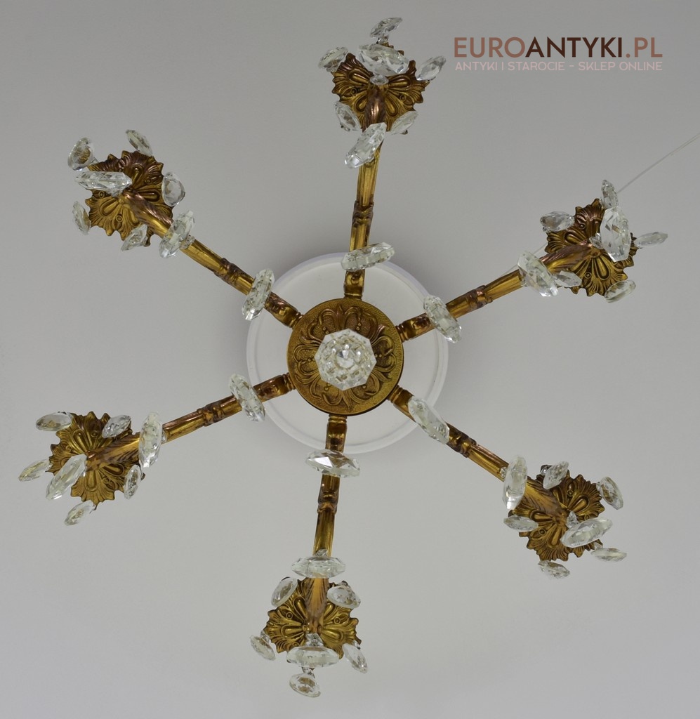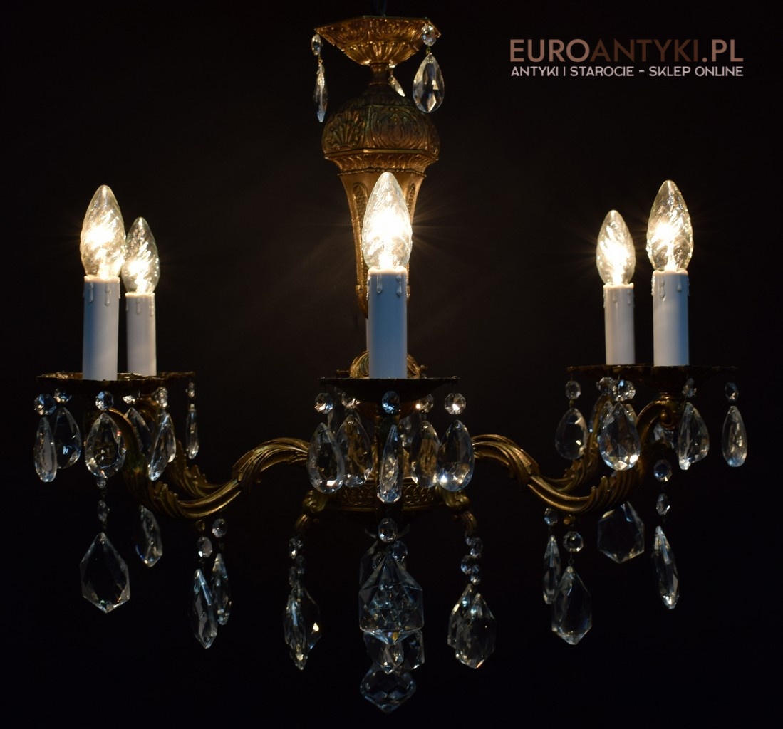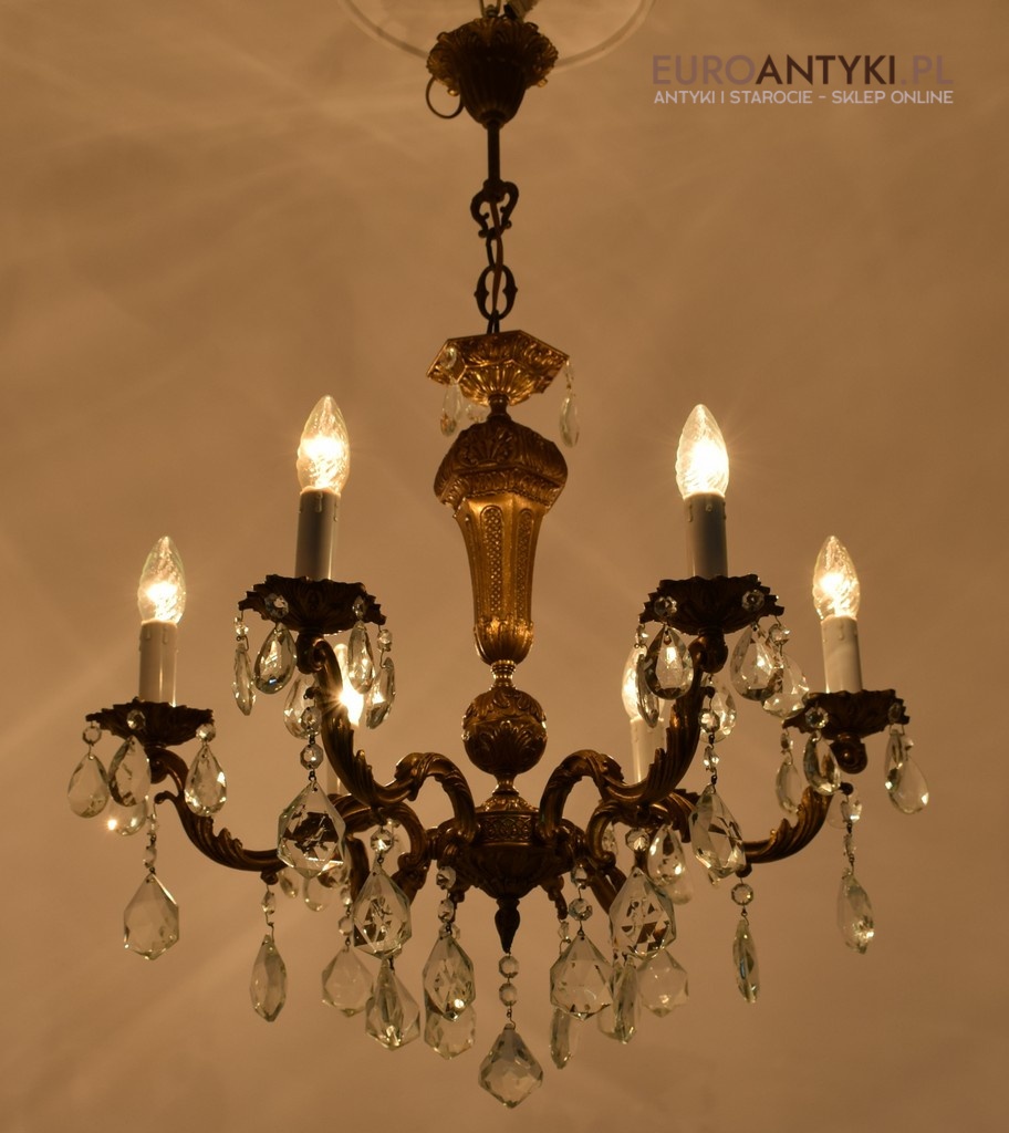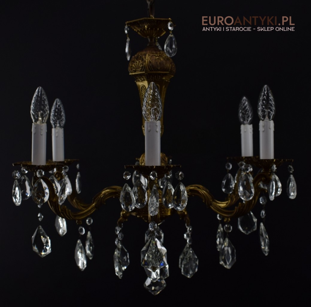 Antyczny żyrandol salonowy z kryształami. Lampy antyki.